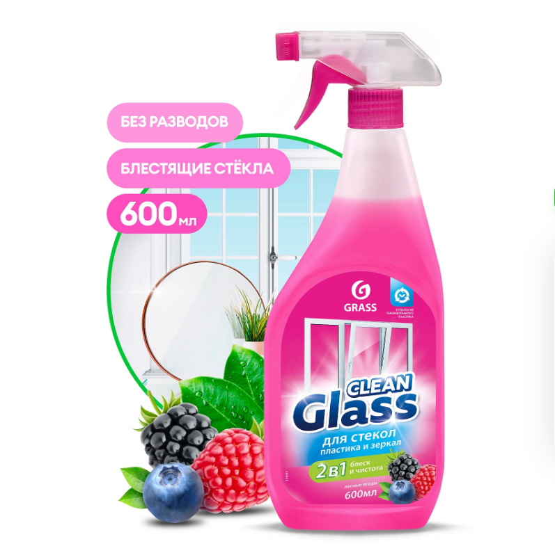 Средство для стекл и зеркал "Clean Glass" 600мл с курком Grass/8